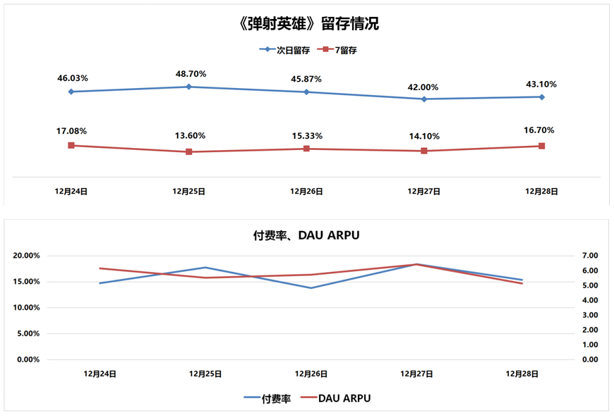 据了解,该作上线后数据远超预期,次日留存达到45%,7日留存15%,付费率12%,首日ARPU 6以上。上海魔贝游戏表示《弹射英雄》的各项数据都远远超过预期,这款产品终于了打破国内弹射玩法不买账的情况。